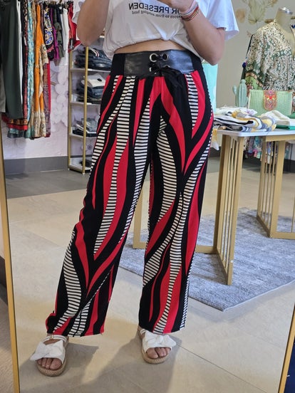 Pantaloni Leopardati, elastico in vita con dettaglio bottone
