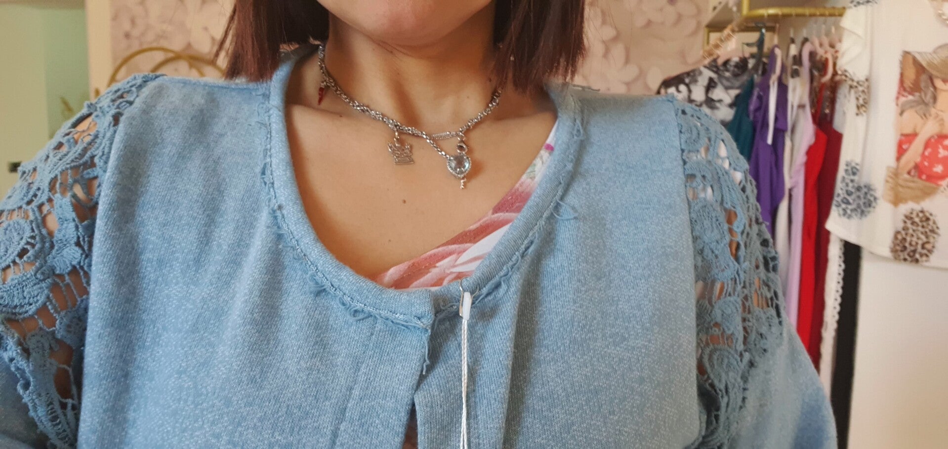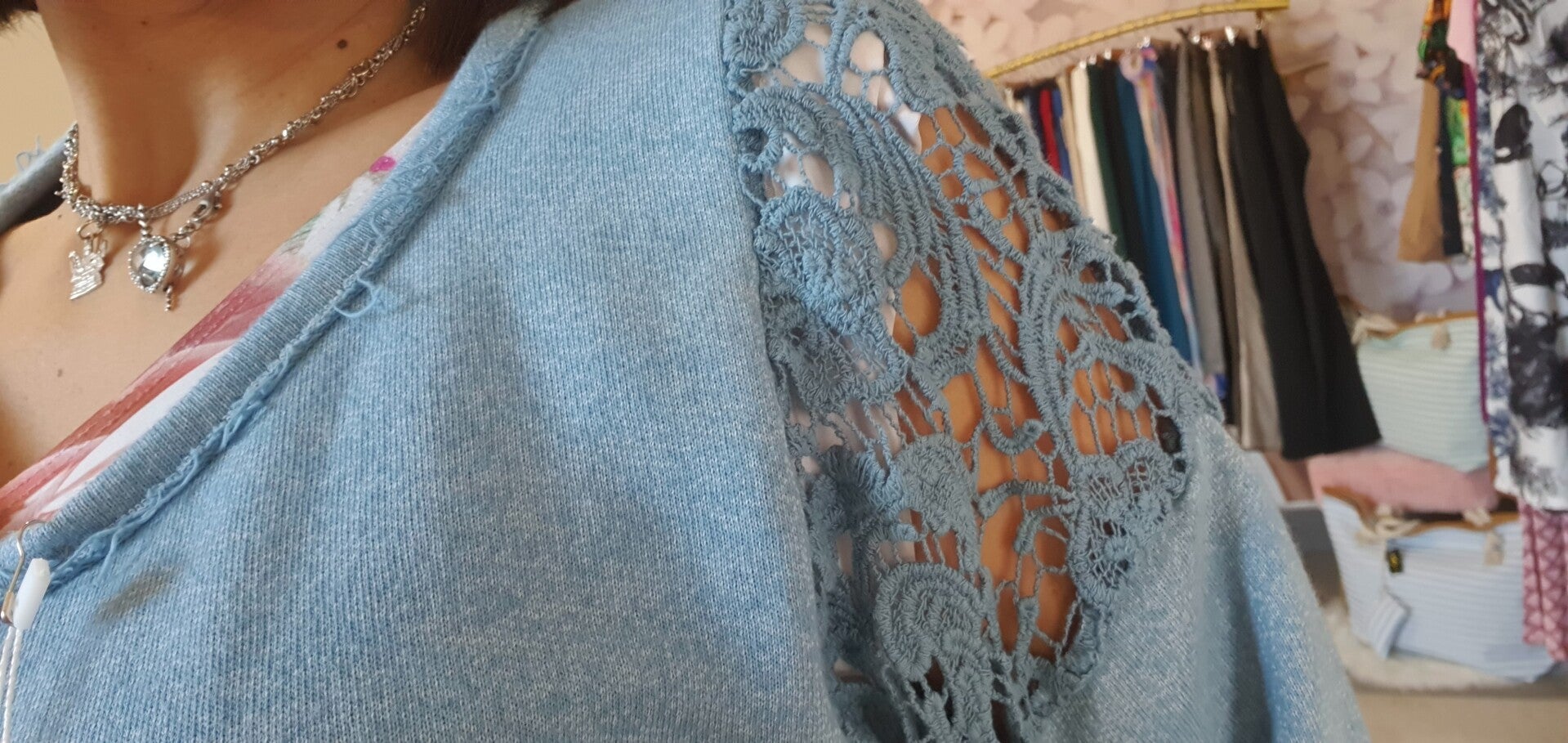 Coprispalle effetto jeans, lavorazione davanti e dietro sulle spalle