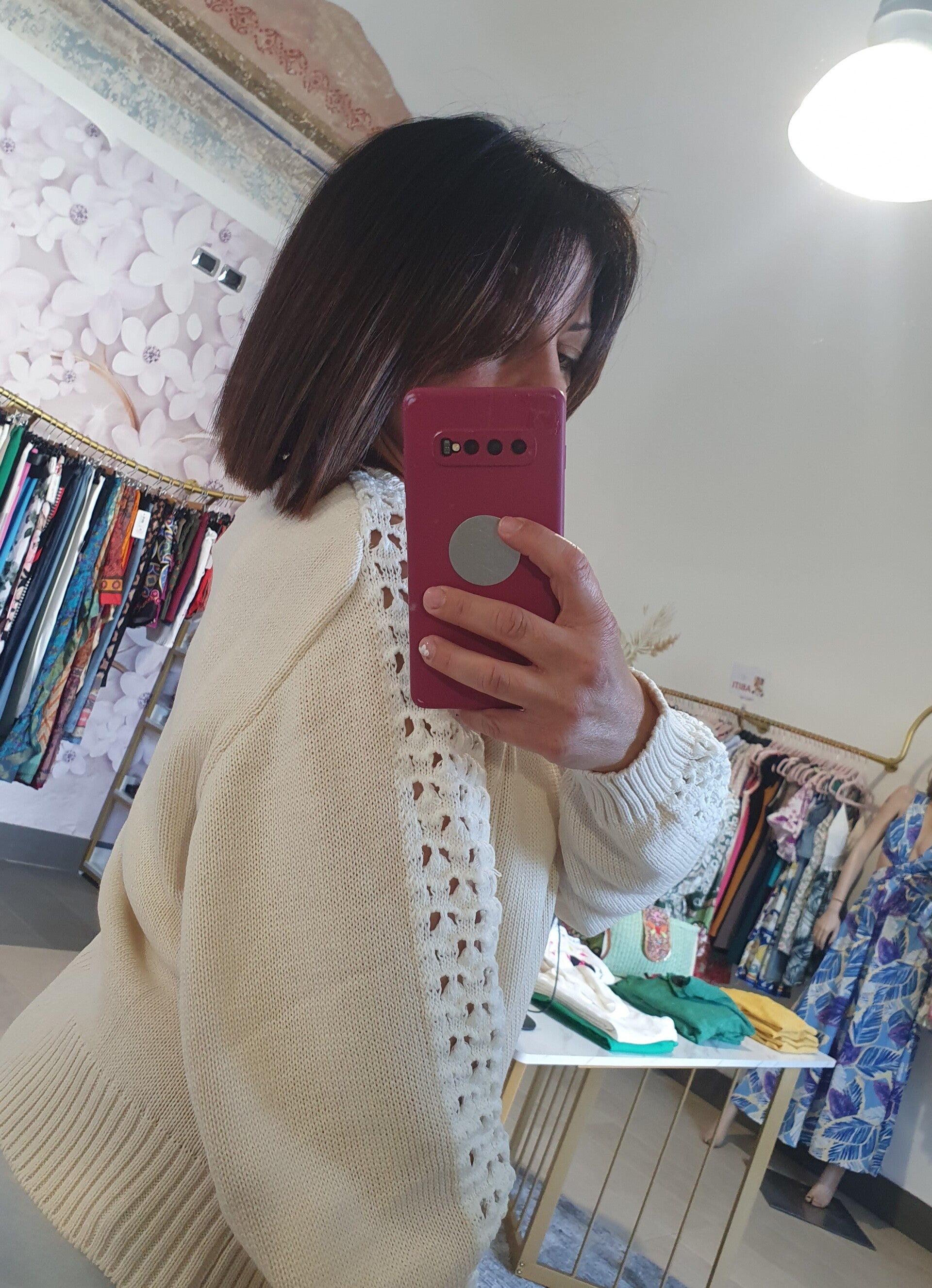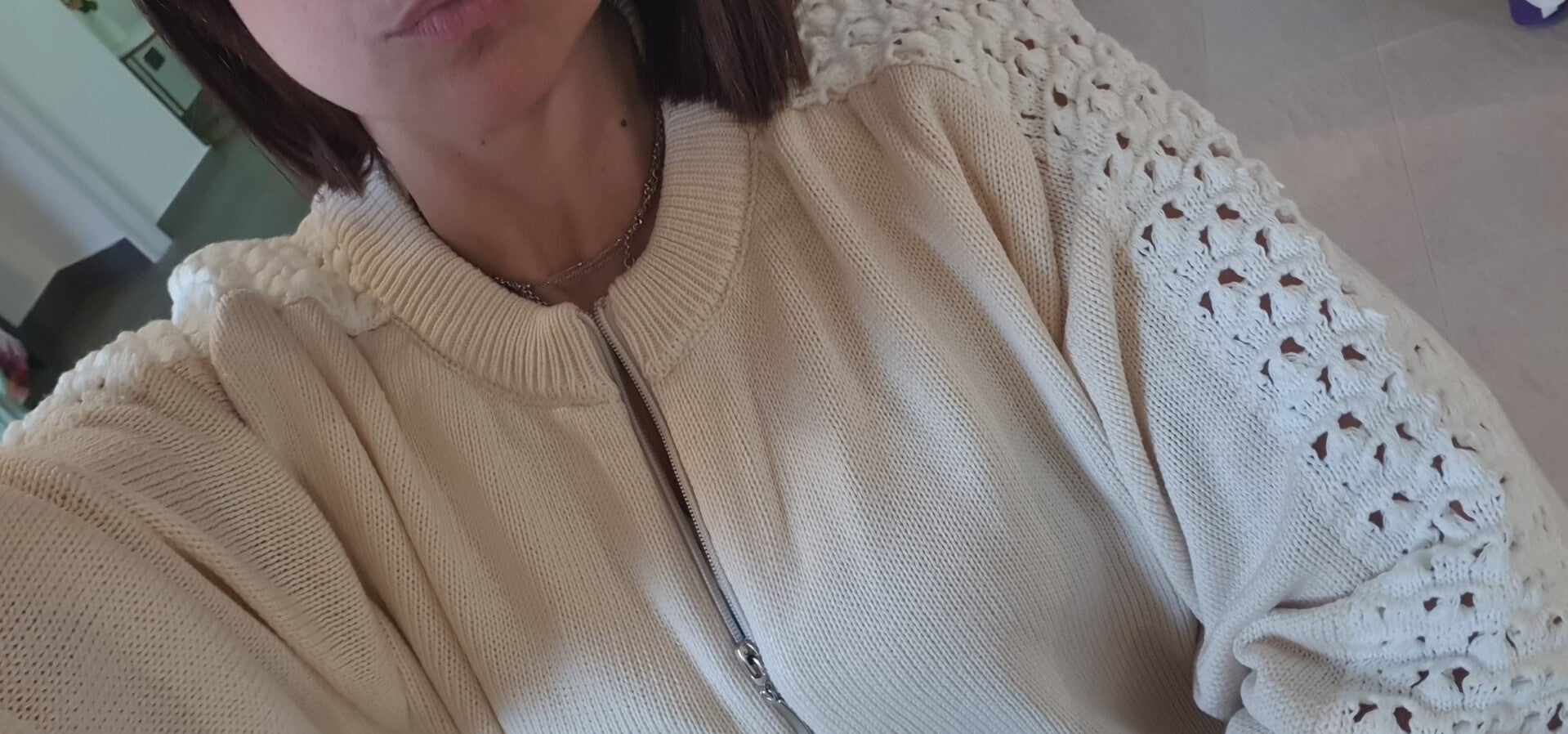Cardigan/Giacchetta forata beige con zip