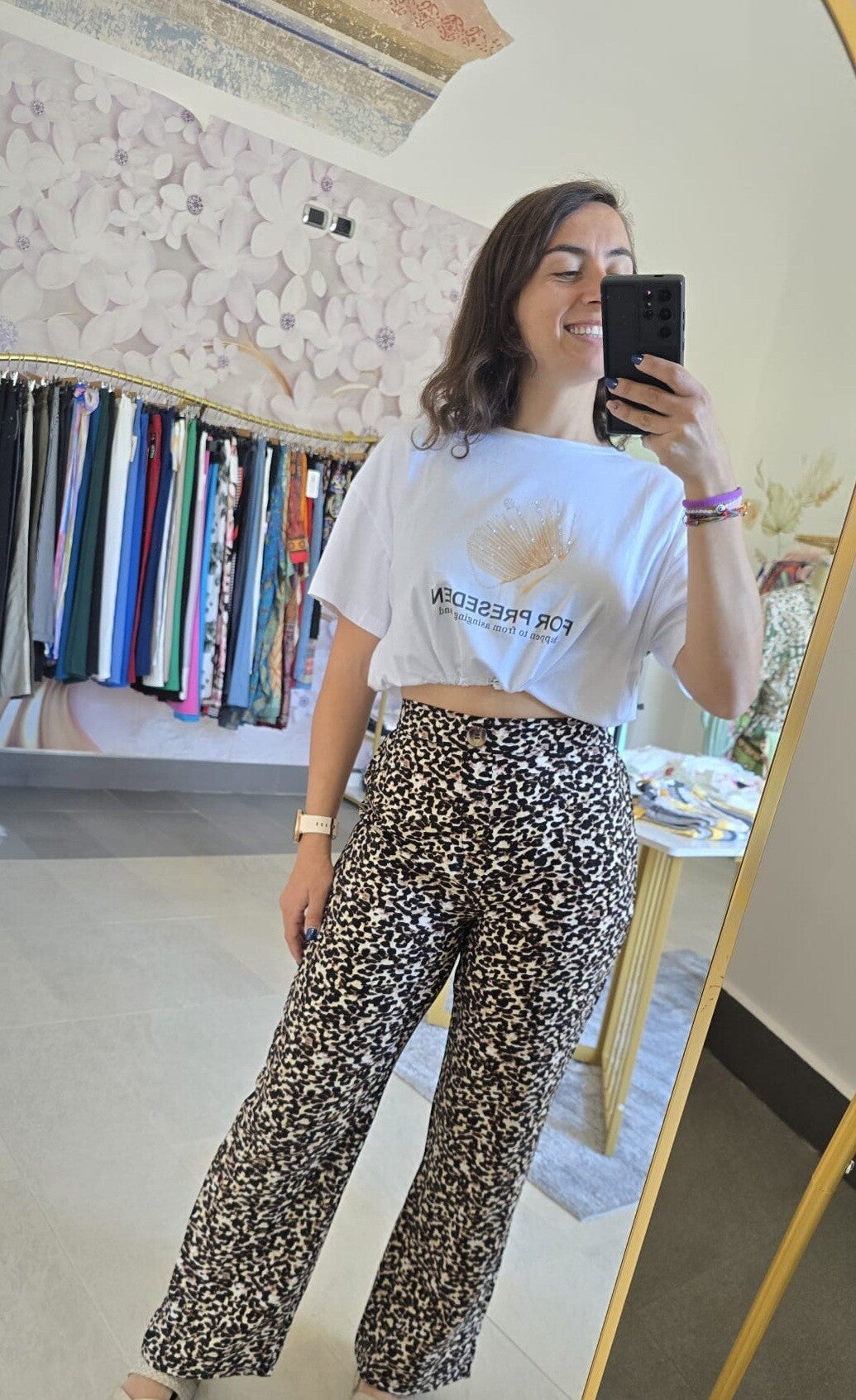 Pantaloni Leopardati, elastico in vita con dettaglio bottone