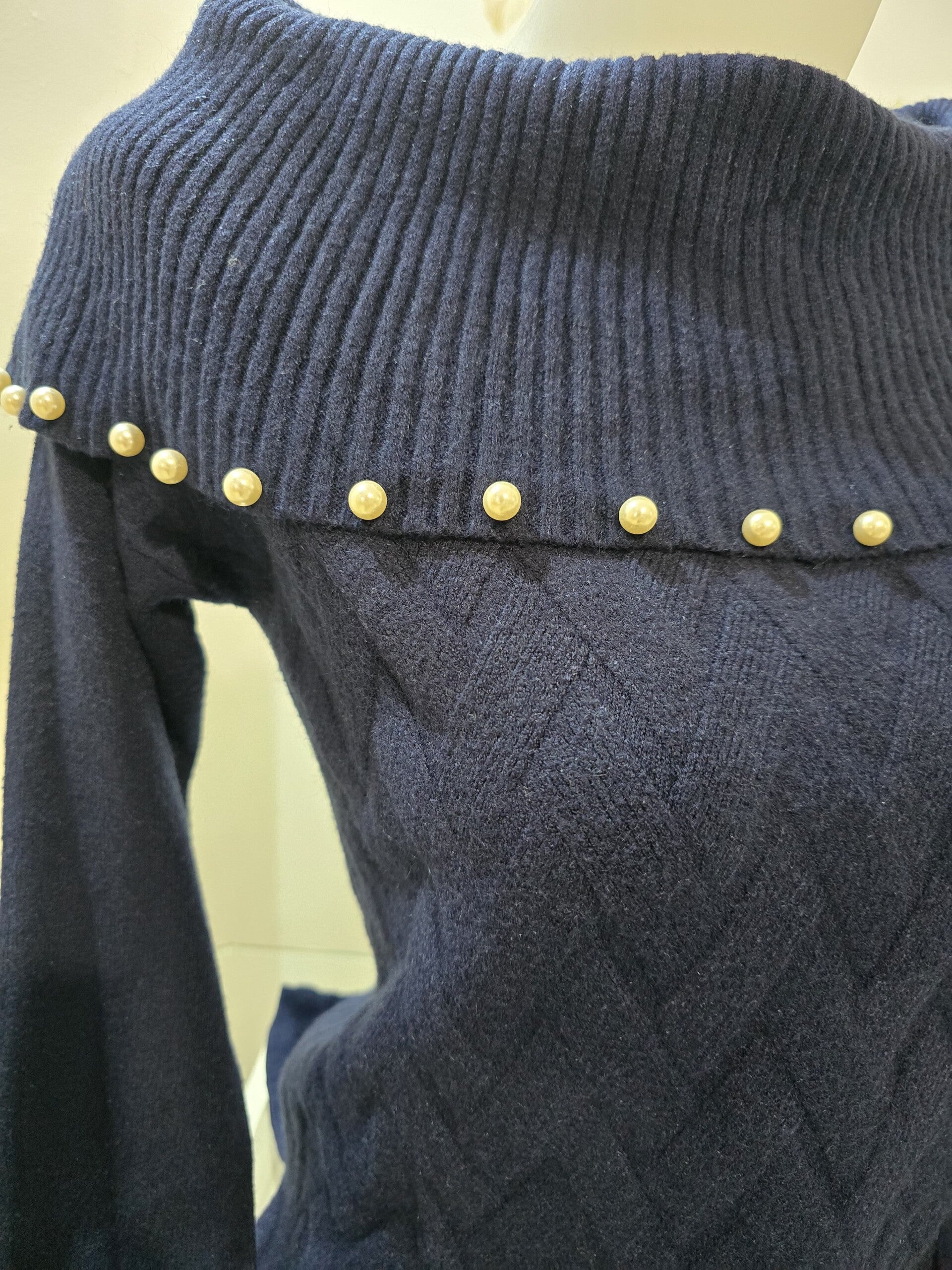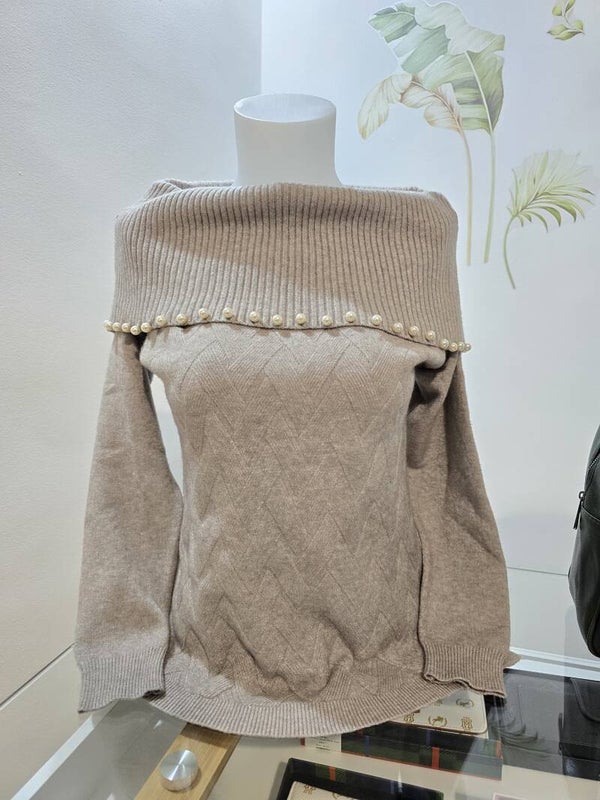 Maglioncino morbido con dettaglio perle sul collo gestibile in diversi modi