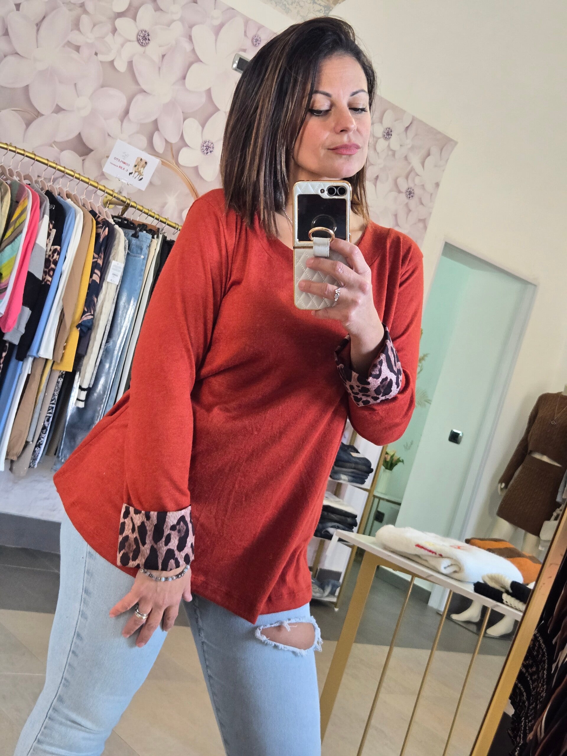 Maglia comoda dettaglio maniche Animalier