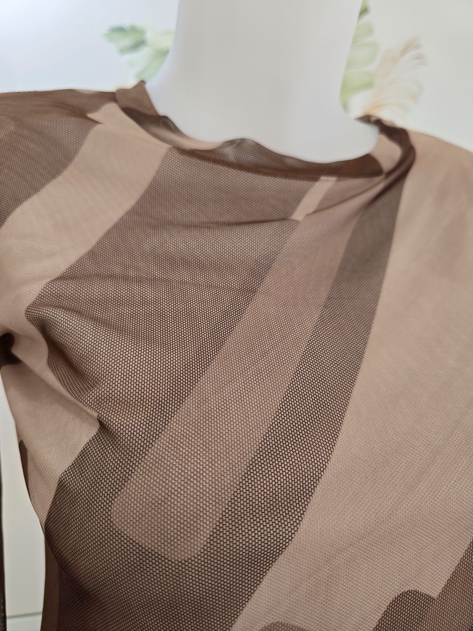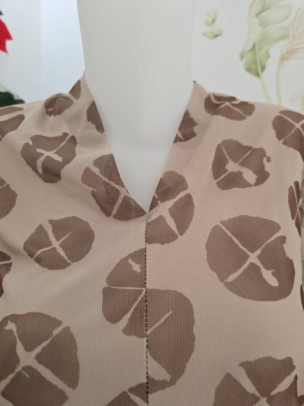 Maglia con manica trasparente, girocollo e scollatura a V con vari disegni