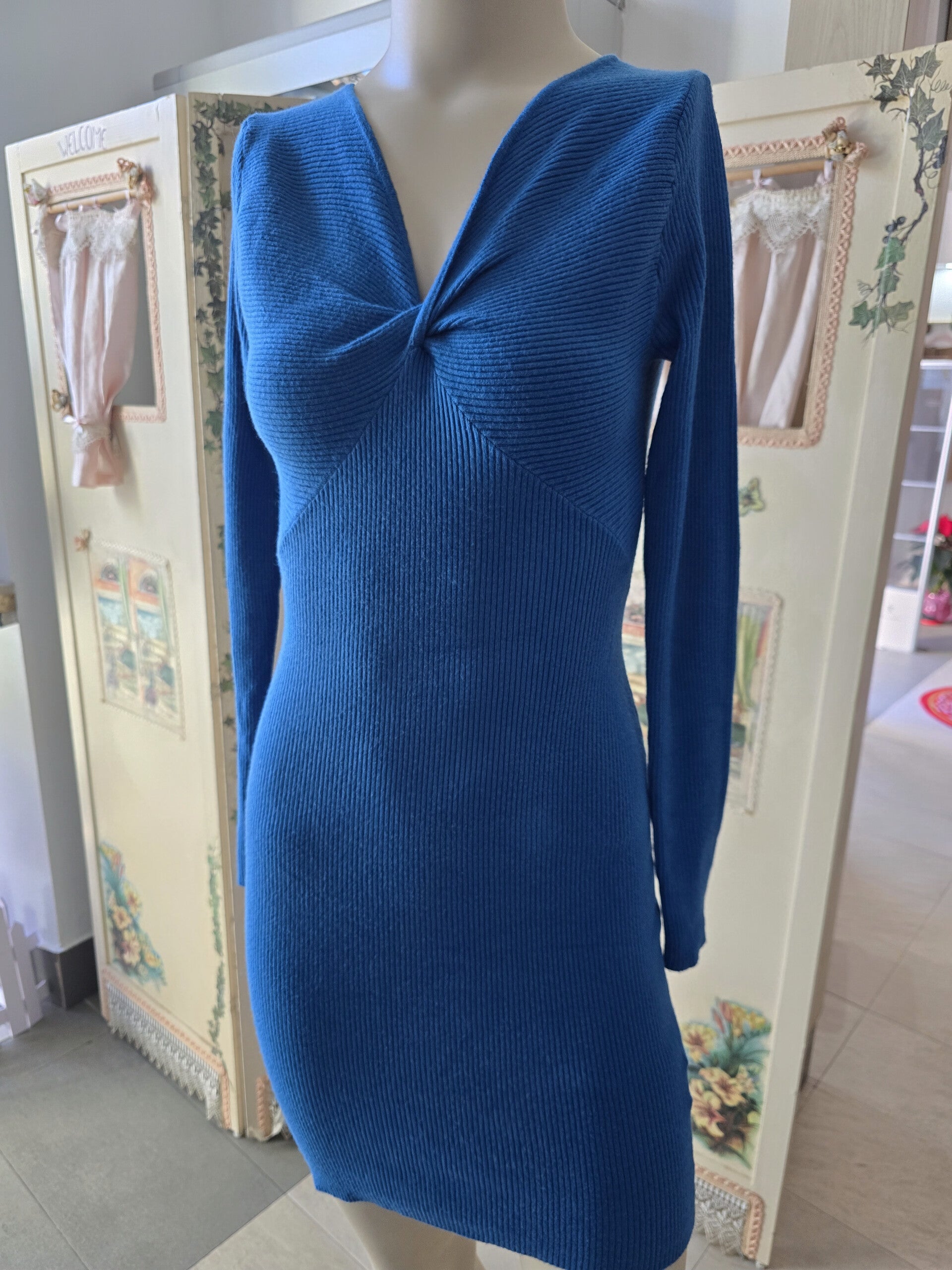 Vestito corto con piccolo incrocio sul seno taglia unica petrolio