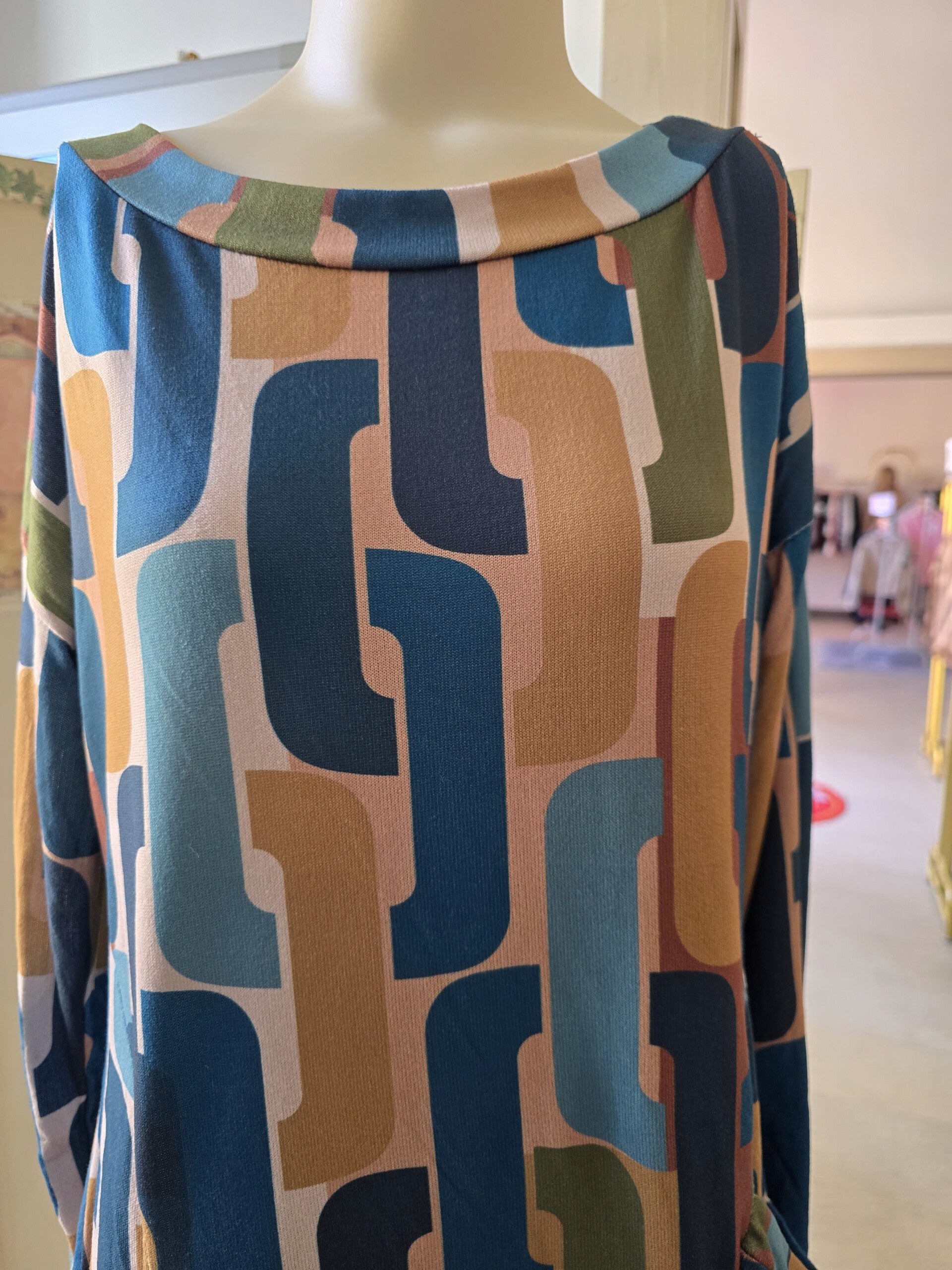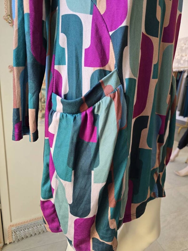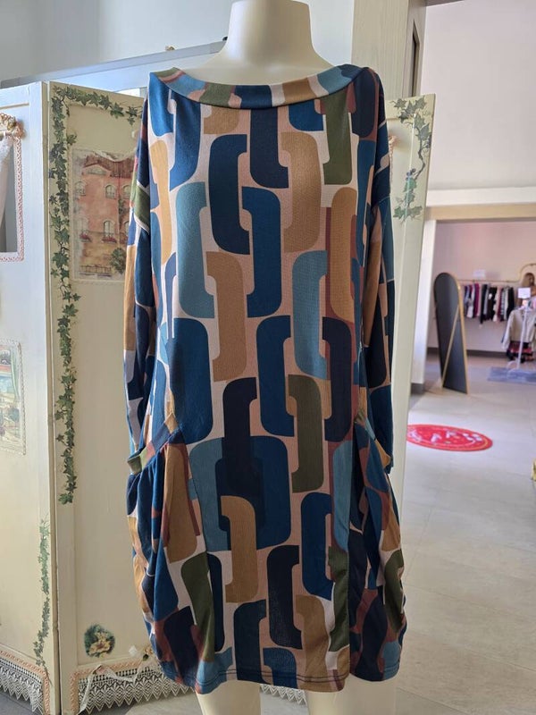 Vestito con forme geometriche e tasconi laterali multicolore taglia unica