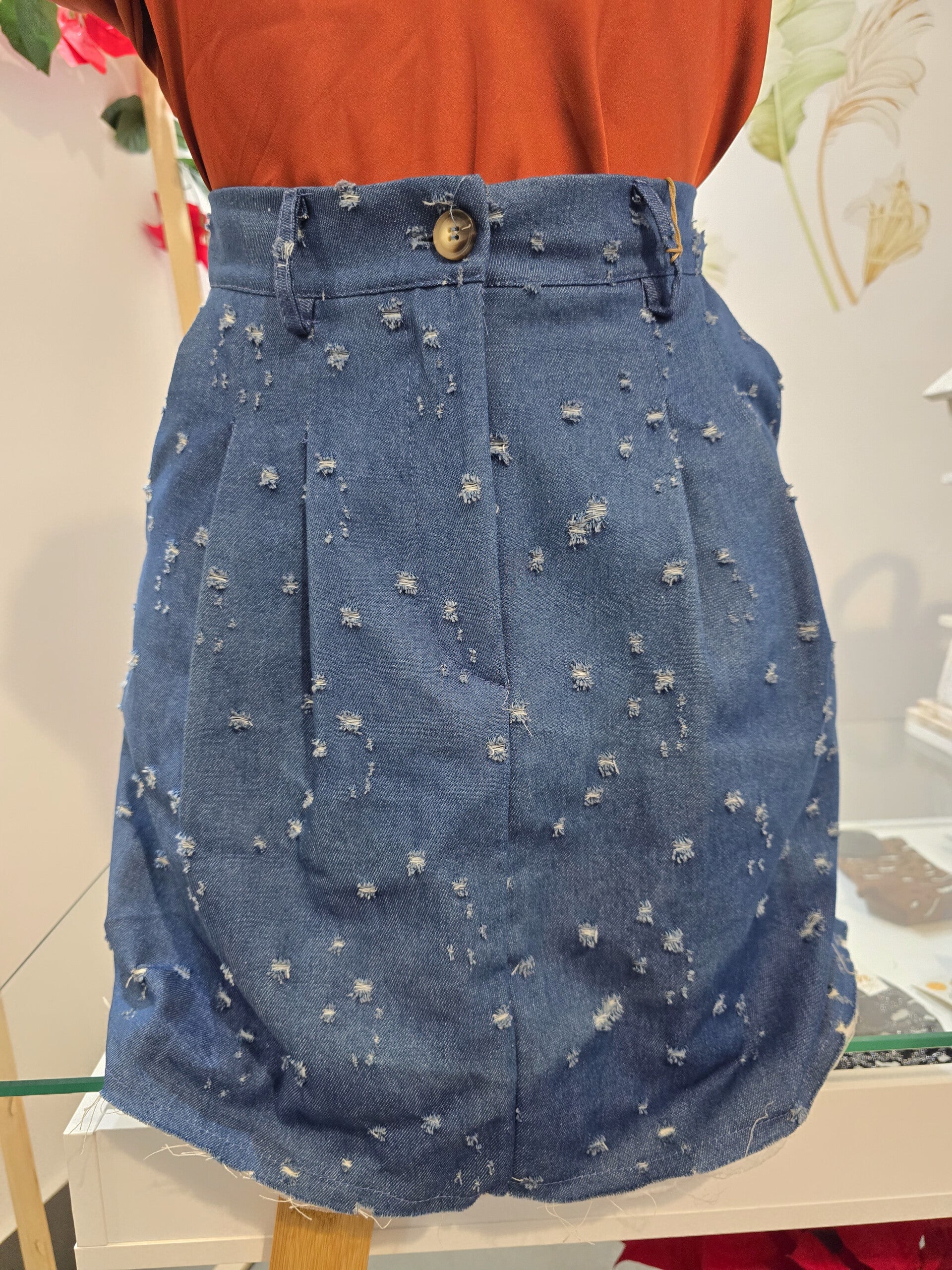Gonna di jeans con dettagli bianchi altezza ginocchio taglia M