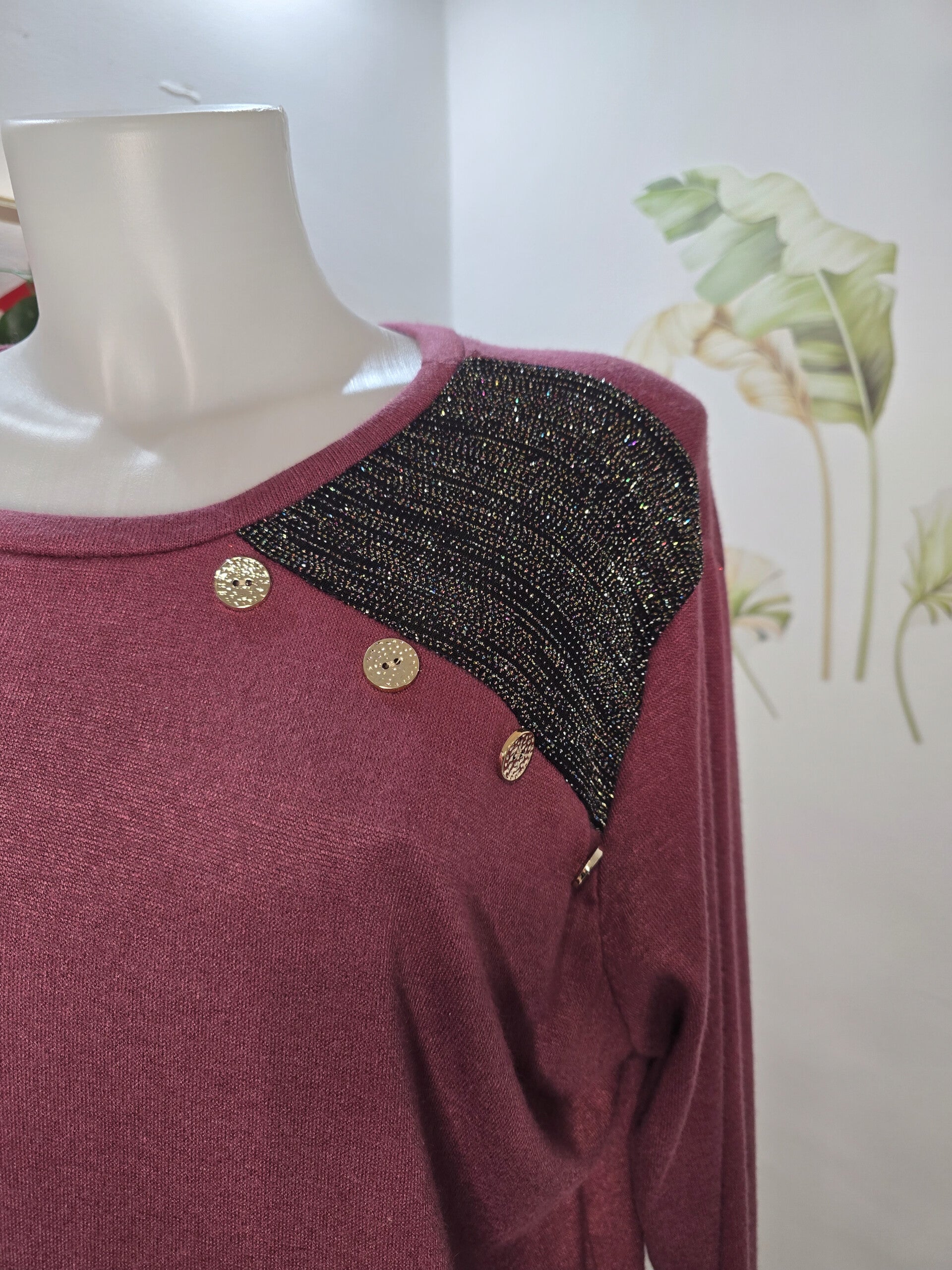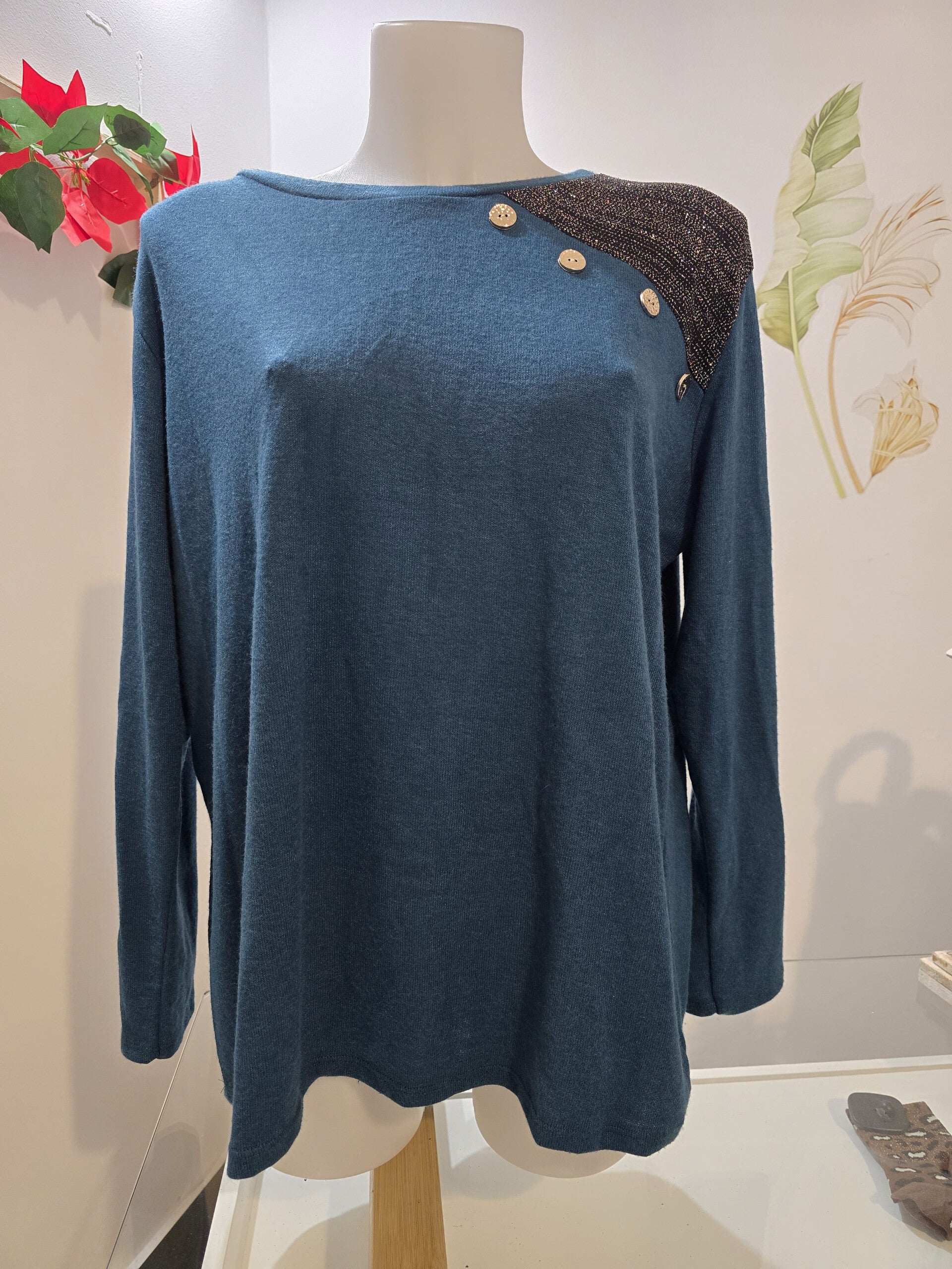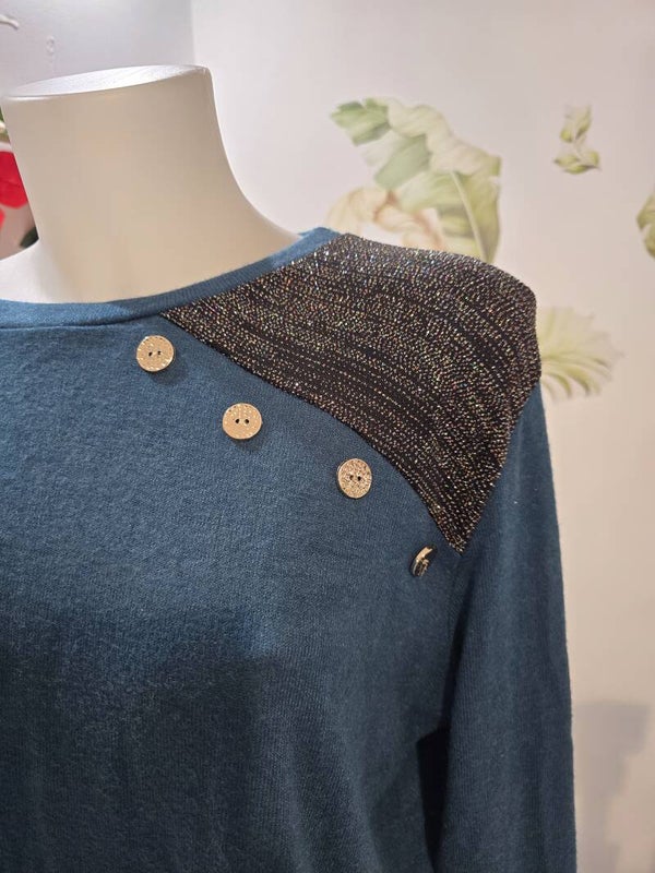 Maglia con dettaglio spalla sinistra 4 bottoni e glitter