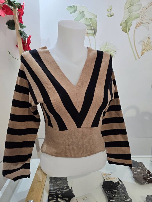 Maglia a righe con scollo a V ampio t