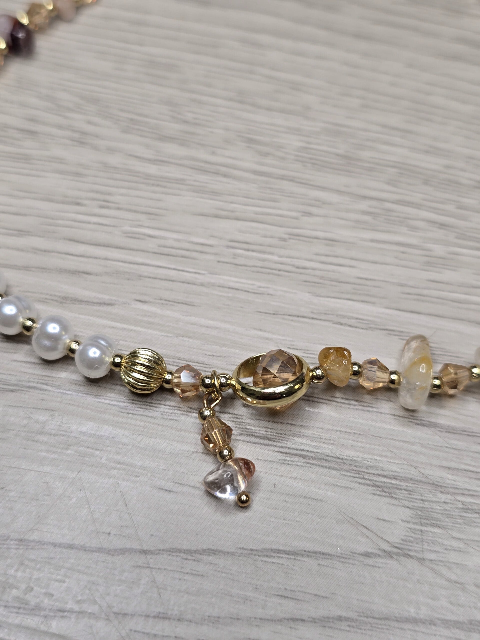 Bracciale doppio giro con dettagli in pietre e piccolo perndente colore oro/rosa