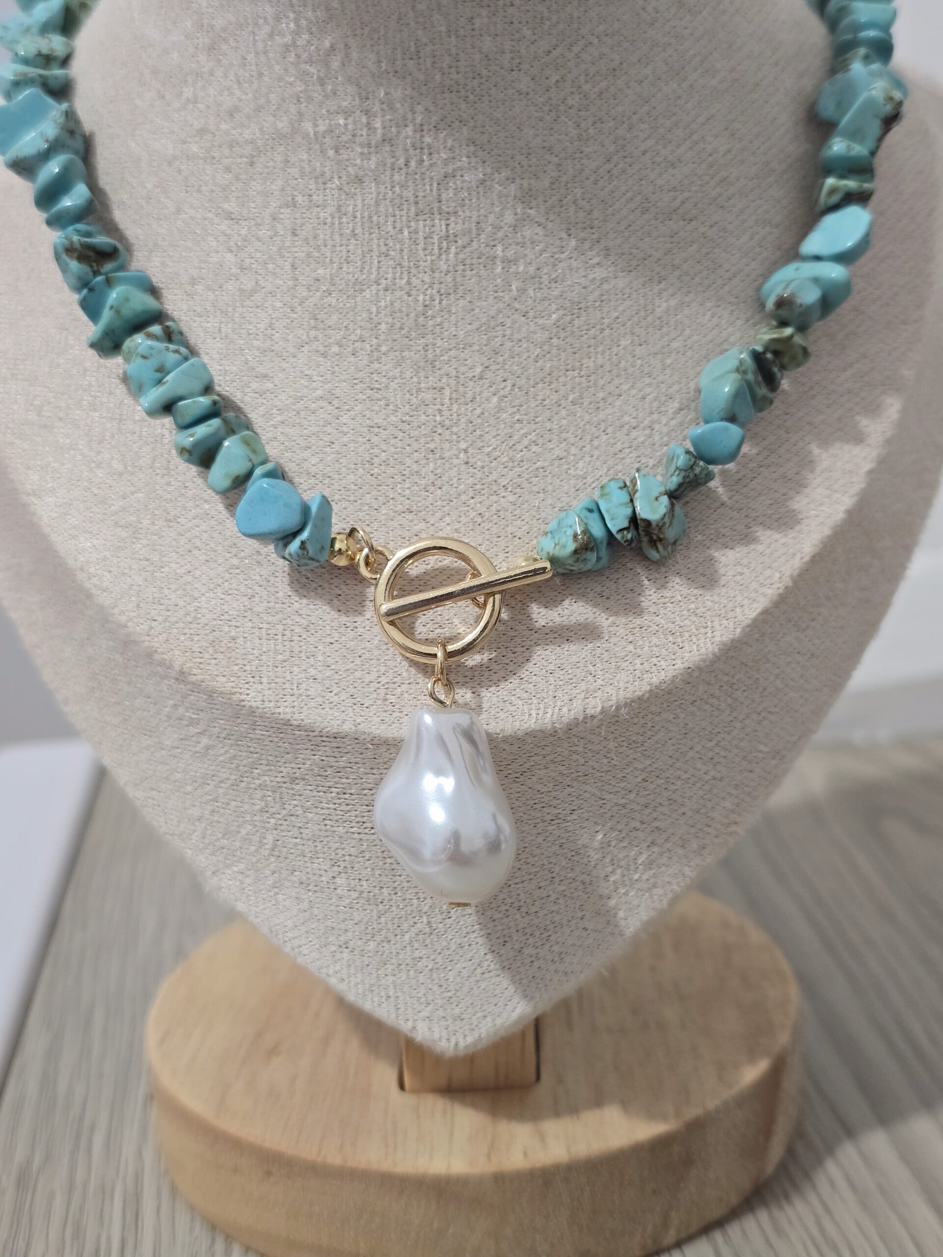 Completo collana con pietre e pendente perla