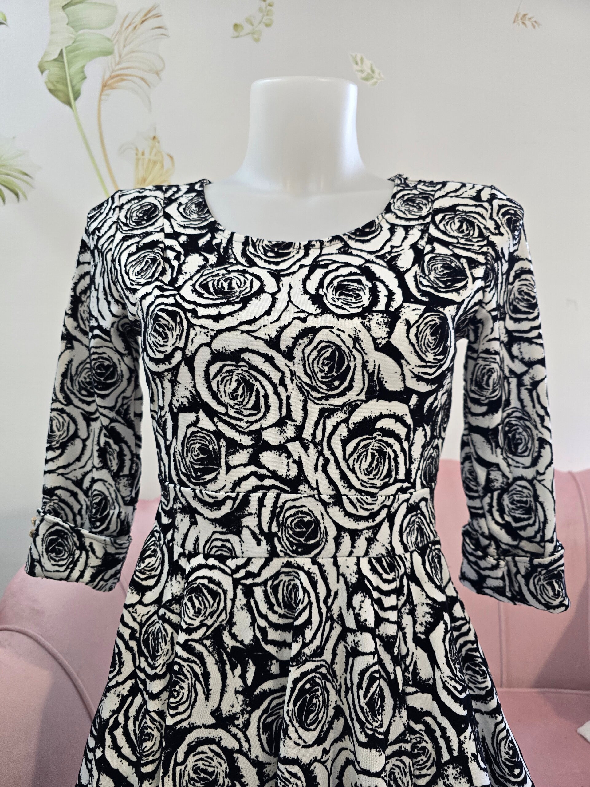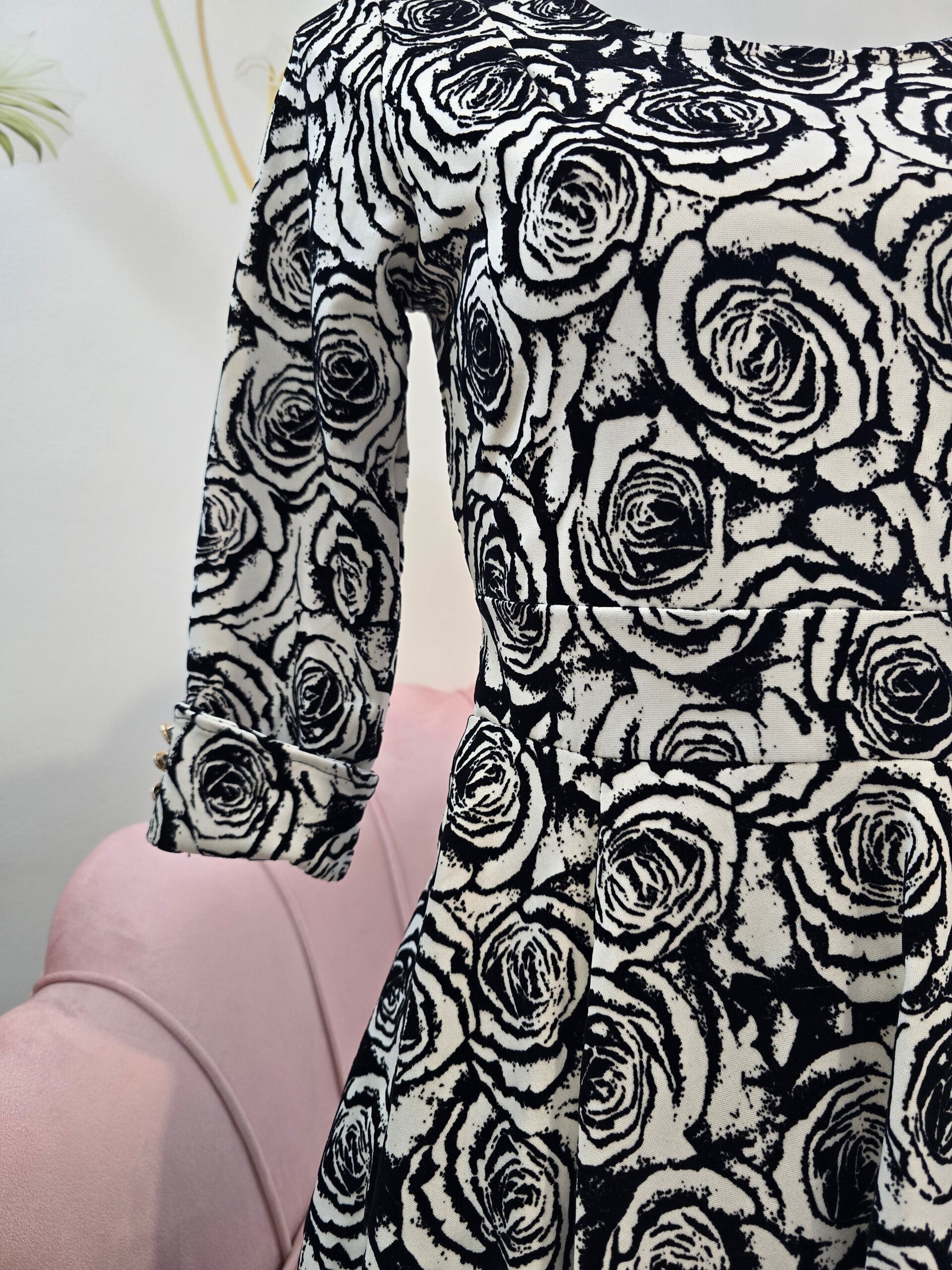 Vestito Elegante con dettagli rose bianco e nero taglia S/M