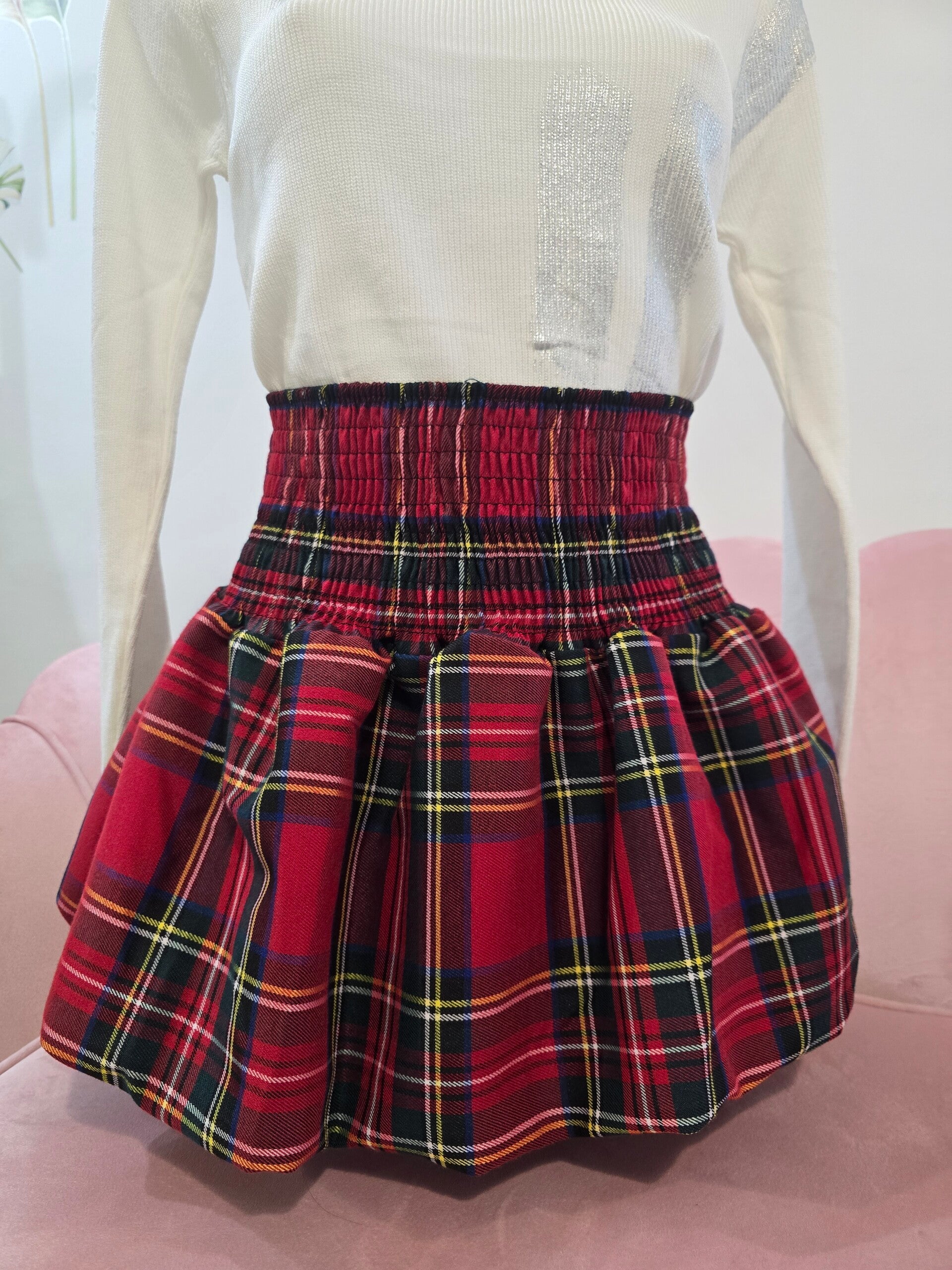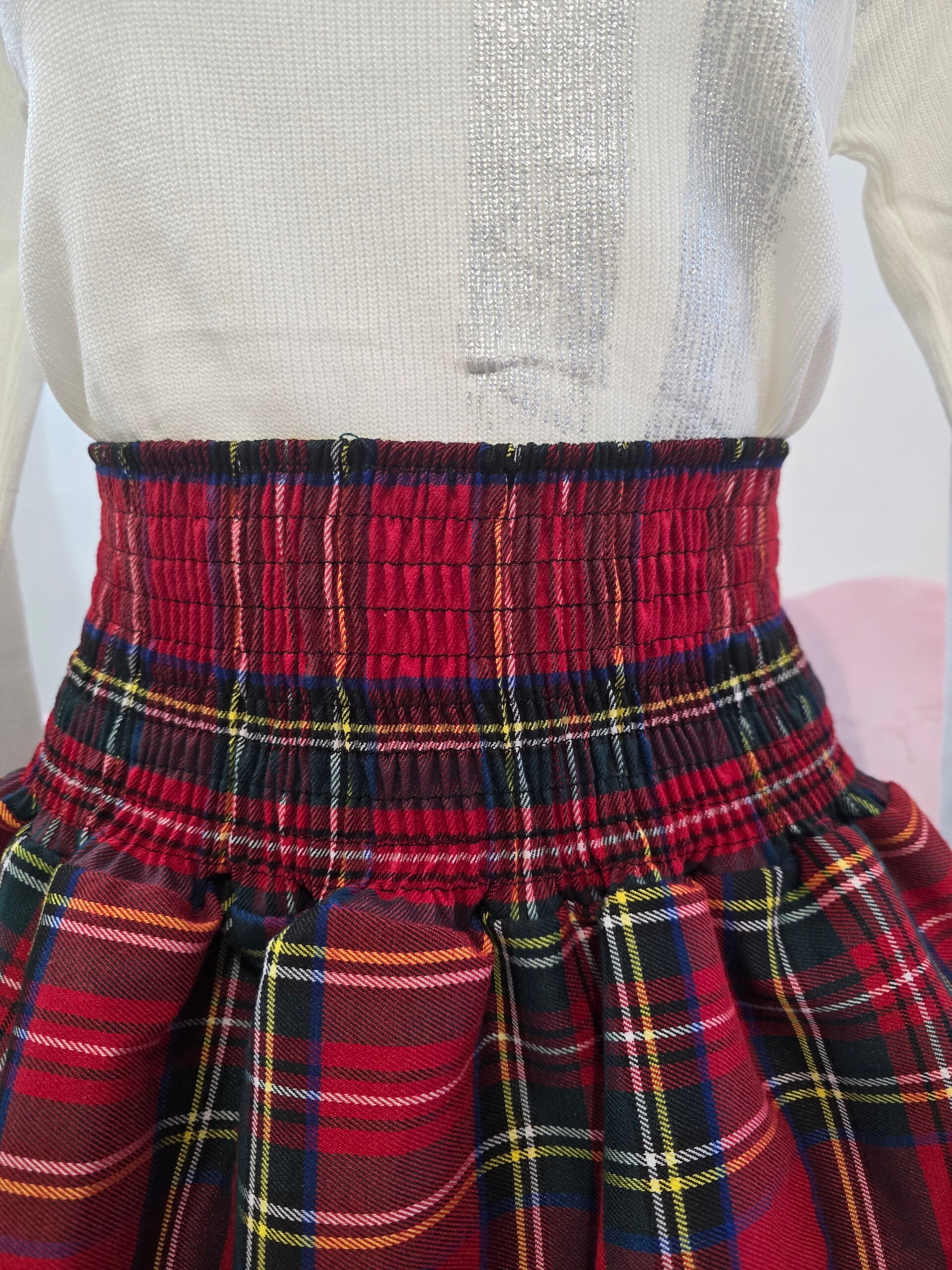 Gonna Scozzese corta con elastico in vita taglia S colore rosso